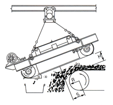 (2)非帶式電磁除鐵器:必須選擇電動(dòng)行走小車 。以便電控自動(dòng)吸、棄鐵。輕型特別是三吊點(diǎn)的除鐵器,一般選擇電動(dòng)單軌單車吊掛。重型設(shè)四吊點(diǎn)的除鐵器可以選擇電動(dòng)雙軌或單軌組合行走架。重型設(shè)三個(gè)吊點(diǎn)的可以選擇電動(dòng)單軌組合行走架。