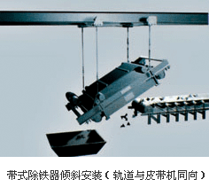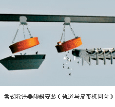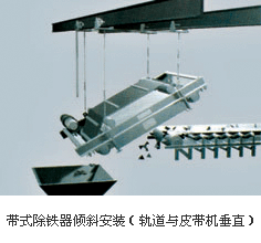 懸掛安裝方式分傾斜、水平兩種,它們均與除鐵器定位在輸料帶的某個(gè)位置工作有關(guān)。