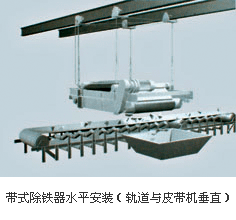 輸料大皮帶除了上下山段之外,多為水平運(yùn)行,在大皮帶任意水平段上方均可按水平式吊裝除鐵器。